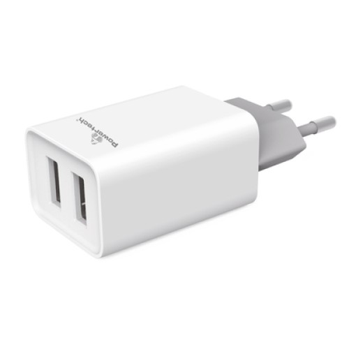 POWERTECH φορτιστής τοίχου PT-778, 2x USB, 2.1A, λευκόςΦορτιστής τοίχου της Powertech, κατασκευασμέν..