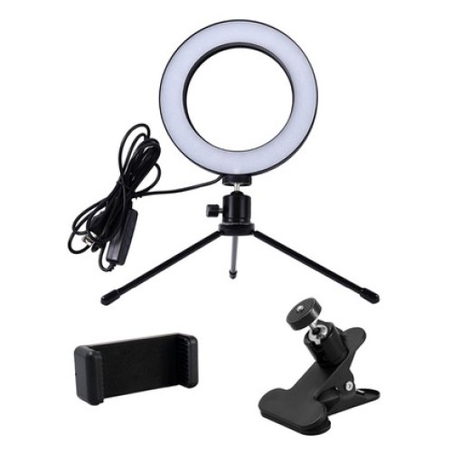 CABLETIME φωτιστικό δαχτυλίδι LED CT-LRL6-PB με μίνι τρίποδα & σφιγκτήρα, βάση smartphone, Φ16cmΦωτι..