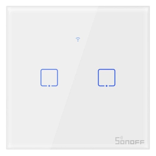 Sonoff T0EU2C-TX Χωνευτός Διακόπτης Τοίχου Wi-Fi για Έλεγχο Φωτισμού με Πλαίσιο και Δύο Πλήκτρα Αφής Φωτιζόμενος Λευκός (IM190314010) (SONIM190314010)