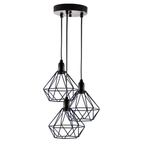 POWERTECH τρίφωτο φωτιστικό οροφής HLL-0004, E27, Φ20, μεταλλικό, μαύροΤρίφωτο κρεμαστό φωτιστικό ορ..