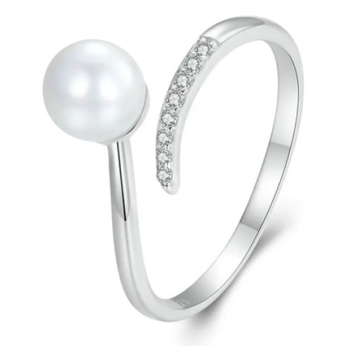 BAMOER δαχτυλίδι BSR497-E με πέρλα & ζιρκόνια, ανοιγόμενο, ασήμι 925