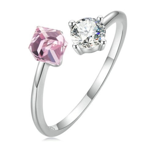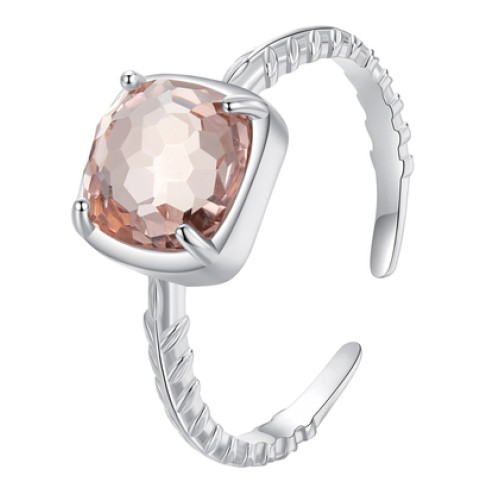 BAMOER δαχτυλίδι BSR598-E με ροζ διάφανο κρύσταλλο, ανοιγόμενο, ασήμι 925, ασημίΕντυπωσιακό δαχτυλίδ..