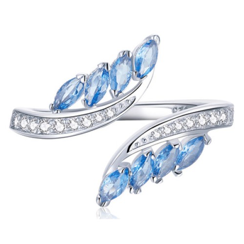 BAMOER δαχτυλίδι BSR005, κυβική ζιρκόνια, ανοιγόμενο, ασήμι 925, ασημίΚομψό δαχτυλίδι σε σχέδιο φύλλ..