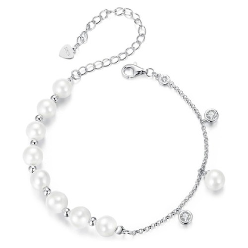BAMOER βραχιόλι BSB189 με πέρλες & κυβική ζιρκόνια, ασήμι 925, ασημί
