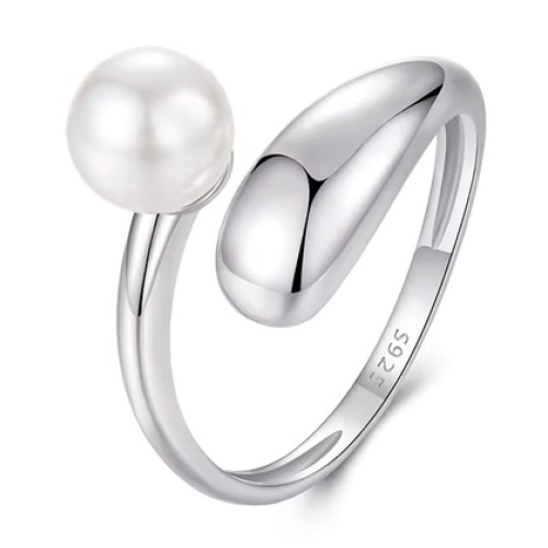 BAMOER δαχτυλίδι BSR662-E με πέρλα, ανοιγόμενο, ασήμι 925, ασημί