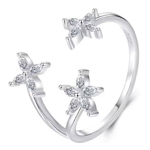BAMOER δαχτυλίδι BSR203-A, κυβική ζιρκόνια, ανοιγόμενο, ασήμι 925, ασημίΚομψό δαχτυλίδι, διακοσμημέν..