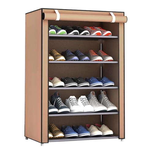 Υφασμάτινη παπουτσοθήκη HUH-0124 με 5 ράφια, 60x30x90cm, καφέ