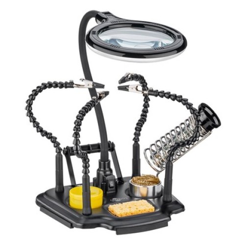 GOOBAY βάση στήριξης πλακέτας 76560 με μεγεθυντικό φακό & θέση για κολλητήρι, 2x βραχίονες, μαύρηΒάσ..