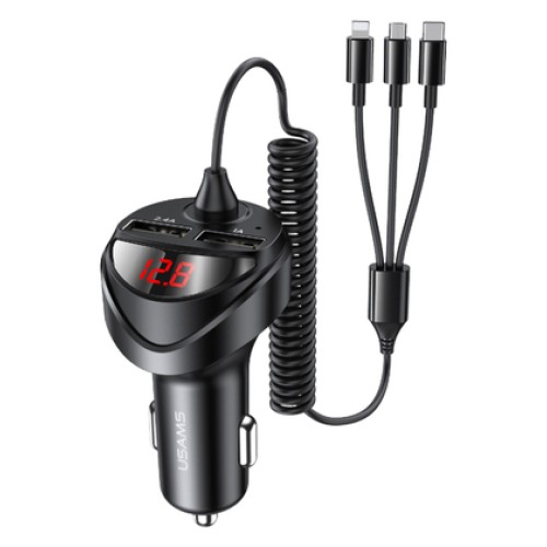 USAMS φορτιστής αυτοκινήτου C22 με καλώδιο 3 σε 1 & οθόνη, 3.4A, μαύροςΥψηλής απόδοσης USB φορτιστής..