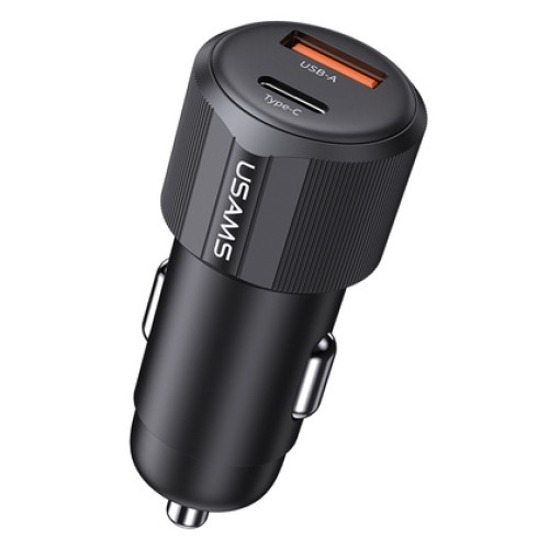 USAMS φορτιστής αυτοκινήτου US-CC164, USB & USB-C, 30W, μαύρος