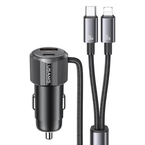 USAMS φορτιστής αυτοκινήτου CC287 με 2 σε 1 καλώδιο, USB/USB-C θύρες, 66W, μαύρος