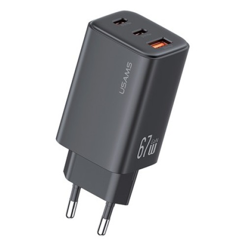 USAMS φορτιστής τοίχου CC265, USB & 2x USB-C, 67W, GaN, μαύρος
