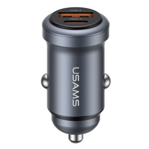 USAMS φορτιστής αυτοκινήτου CC322, USB & USB-C, 30W, γκριΥψηλής απόδοσης φορτιστής αυτοκινήτου της U..
