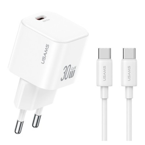 USAMS φορτιστής τοίχου CC262 με καλώδιο USB-C, 30W, GaN, λευκόςΥψηλής απόδοσης φορτιστής τοίχου της ..