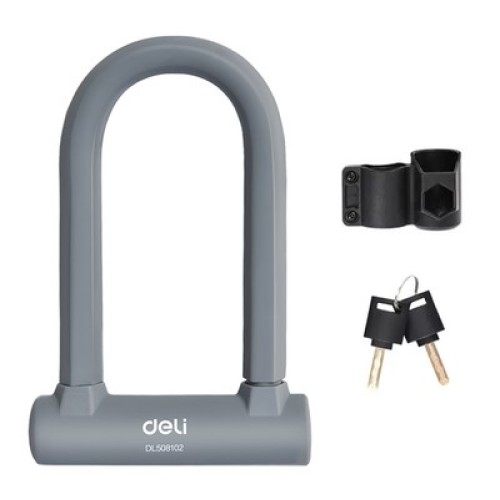 DELI κλειδαριά πέταλο ποδηλάτου με κλειδί DL508102, 126x196mm, γκρι