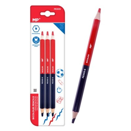 MP ξυλομπογιά με διπλή μύτη PE305, 5mm μύτη, εξάγωνο, μπλε/κόκκινο, 3τμχΞυλομπογιά της MP με διπλή μ..