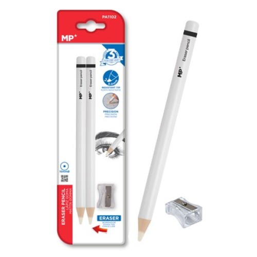 MP ξυλομπογιά PA1102 με ξύστρα, 5mm μύτη, στρογγυλό, λευκό, 2τμχΕιδική λευκή ξυλομπογιά της MP, ιδαν..