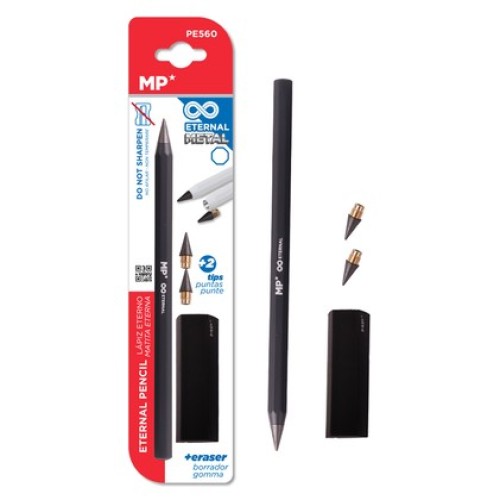 MP eternal μεταλλικό μολύβι PE560 με γόμα & 2x ανταλλακτικές μύτες, μαύροΚαινοτόμο eternal μεταλλικό..