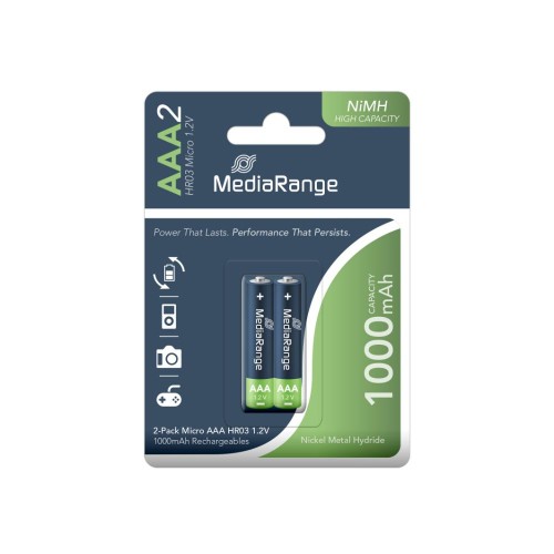 MediaRange High Capacity Rechargeable NiMH Accus Micro AAA|HR03|1.2V Pack 2 (MRBAT122)