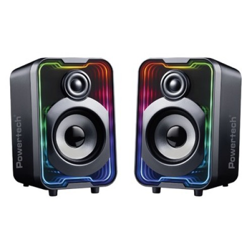 POWERTECH ηχεία PT-1575 με RGB φωτισμό, 2x 5W, Bluetooth & USB/USB-C, μαύραΑπολαύστε καθαρό ήχο με ε..