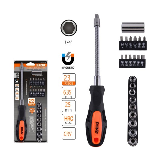 Shind Σετ Ευκαμπτο Κατσαβιδι Με Μυτες & Καρυδακια 23τεμ. (SHI-94485) (SHI94485)