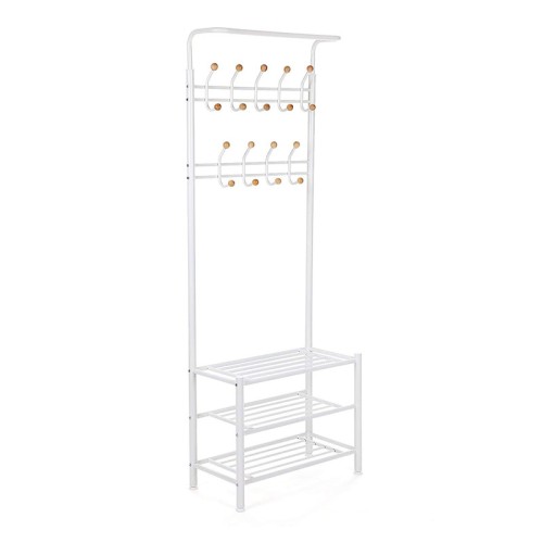 Μεταλλικό Έπιπλο Εισόδου με 3 Ράφια και 9 Κρεμάστρες 68.8 x 35.2 x 187 cm Χρώματος Λευκό Songmics (HSR04W) (SNGHSR04W)
