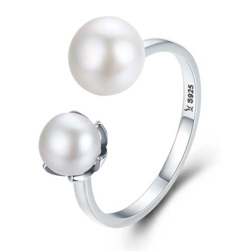 BAMOER δαχτυλίδι SCR192 με λευκές πέρλες, ανοιγόμενο, ασήμι 925, ασημί