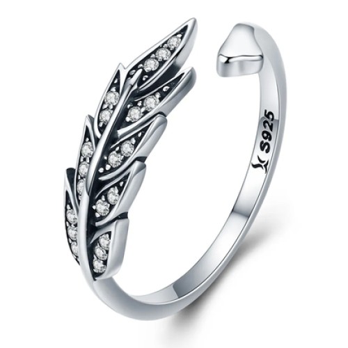 BAMOER δαχτυλίδι SCR313, κυβική ζιρκόνια, ανοιγόμενο, ασήμι 925, ασημίΚομψό δαχτυλίδι σε σχέδιο φτερ..
