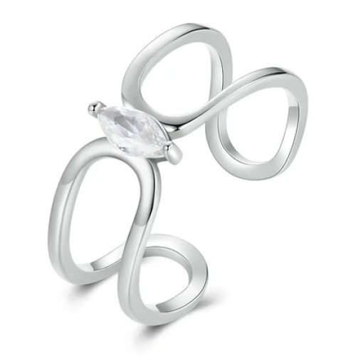 BAMOER δαχτυλίδι SCR471 με κυβική ζιρκόνια, ανοιγόμενο, ασήμι 925, ασημί
