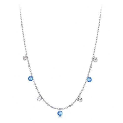 BAMOER κολιέ BSN428 με κυβική ζιρκόνια, ασήμι 925, ασημί/μπλε