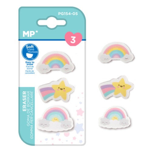 MP γόμα για μολύβι ουράνιο τόξο PG154-05, 3τμχΓόμα με σχέδιο ουράνιο τόξο, για σβήσιμο λαθών σε χαρτ..