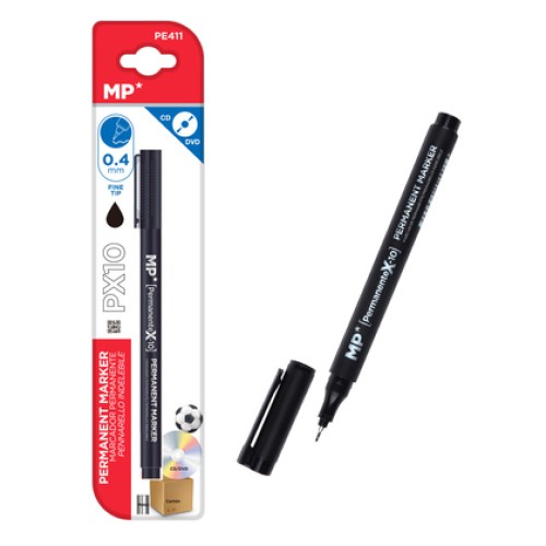 MP ανεξίτηλος μαρκαδόρος PE411, πάχος μύτης 0.4mm, μαύροςΑνεξίτηλος μαρκαδόρος, μαύρου χρώματος, με ..