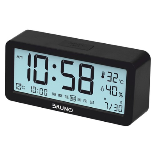 BRUNO ξυπνητήρι BRN-0128 με μέτρηση θερμοκρασίας και υγρασίας, μαύρο